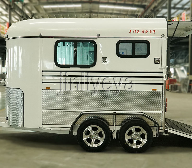 车厢:通常采用全封闭式或半封闭式设计。全封闭式车厢能为马匹提供更安全、稳定且受外界干扰小的环境,有效抵御风雨、寒冷等恶劣天气;半封闭式车厢则在保证一定防护功能的同时,具有更好的通风性。车厢内部一般设有分隔栏,可将空间分隔成多个独立区域,避免马匹在运输过程中相互碰撞、踩踏,保障马匹的安全。